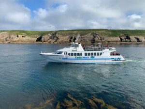 J’aime bien me lancer des défis. Après les vieilles pierres du manoir de Gernac’hanay, j’avais envie de m’attaquer à un site. Quoi de plus emblématique, pour un sud-Finistérien, que le célèbre raz de Sein ? Et si, en plus, on imaginait le dessiner de nuit, par temps calme, pour une fois. Je ne dis pas que je ne tenterai pas, un jour, de le représenter quand il est furieux, mais ce sera alors à la lumière du jour…